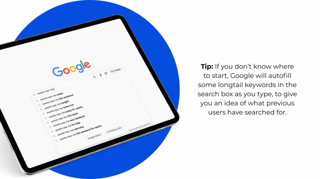 - Long-Tail Keywords: These are more specific phrases, like “indie music festival Brooklyn September” or “family-friendly theatre show downtown.” Long-tail keywords often have lower search volume but a much higher conversion rate because they capture fans with a very specific intent.